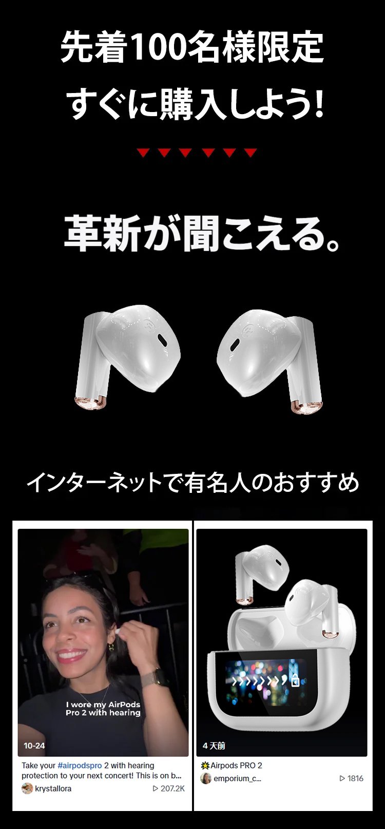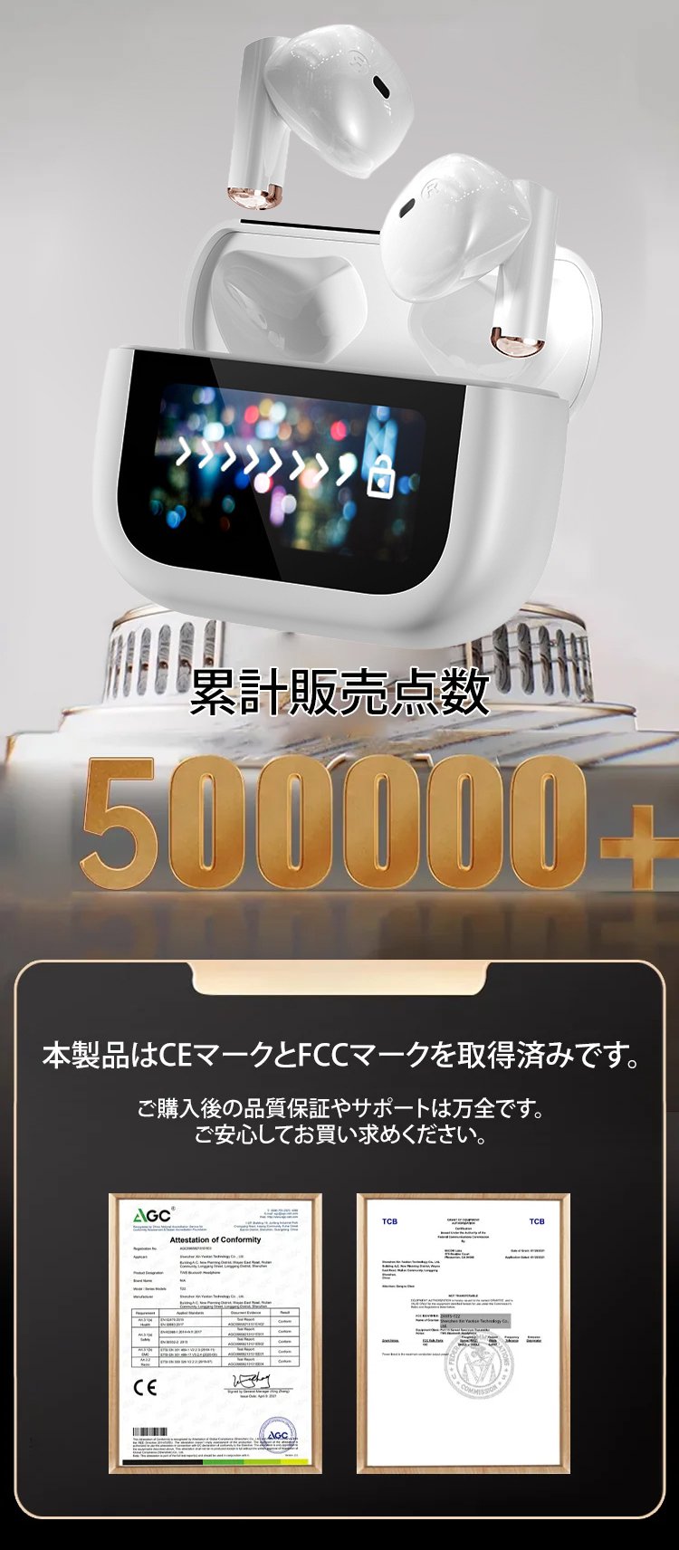 【ANCデュアルノイズキャンセリング】 タッチスクリーンBluetoothイヤホン